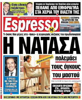 Όταν ΑΥΤΟΙ που θέλουν να λέγονται δημοσιογράφοι φτάνουν σε τέτοιο αισχρό σημείο που είναι το άκρον άωτο του κιτρινισμού , και της μαύρης ελεεινής μορφής παραενημέρωση, ο μόνος τρόπος που μπορείς να αμυνθείς είναι να τους τα χώνεις μέσα από το ιντερνέτ. Αυτό το ξέρουν τα δημοσιογραφικά λαμογια και προσπαθούν με χιλίους δυο τρόπους να ακυρώσουν αυτό το «φαινόμενο». Τον Καραμανλή τον χτυπάμε μέρα νύχτα και θα συνεχίσουμε να τον χτυπάμε για τα κακώς κείμενα σε πολιτικό επίπεδο, σαν το χταπόδι. Αλλά όταν μια βρωμοφυλλάδα χρησιμοποιεί το πρωτοσέλιδο της παραπλανώνταςκαι τους αναγνώστες της ως δήθεν αποκλειστική μπούρδα περί Νατάσσαςαφήνοντας σαφείς υπαινιγμούς ελεεινής μορφής , και εντός να αναφέρεται σε σεμινάρια και τρίχες κατσαρές αυτό αγγίζει τα όρια του δημοσιογραφικού αίσχους. Και από πού παρακαλώ όλα αυτά ; Από την παλιοφυλλάδα του «Κουμπάρου» ΛΑΥΡΕΝΤΙΑΔΗ .Να χαίρεσαι την κουμπαριά κυρία ΝΤΟΡΑ”. (ΙΧΝΟΣ)