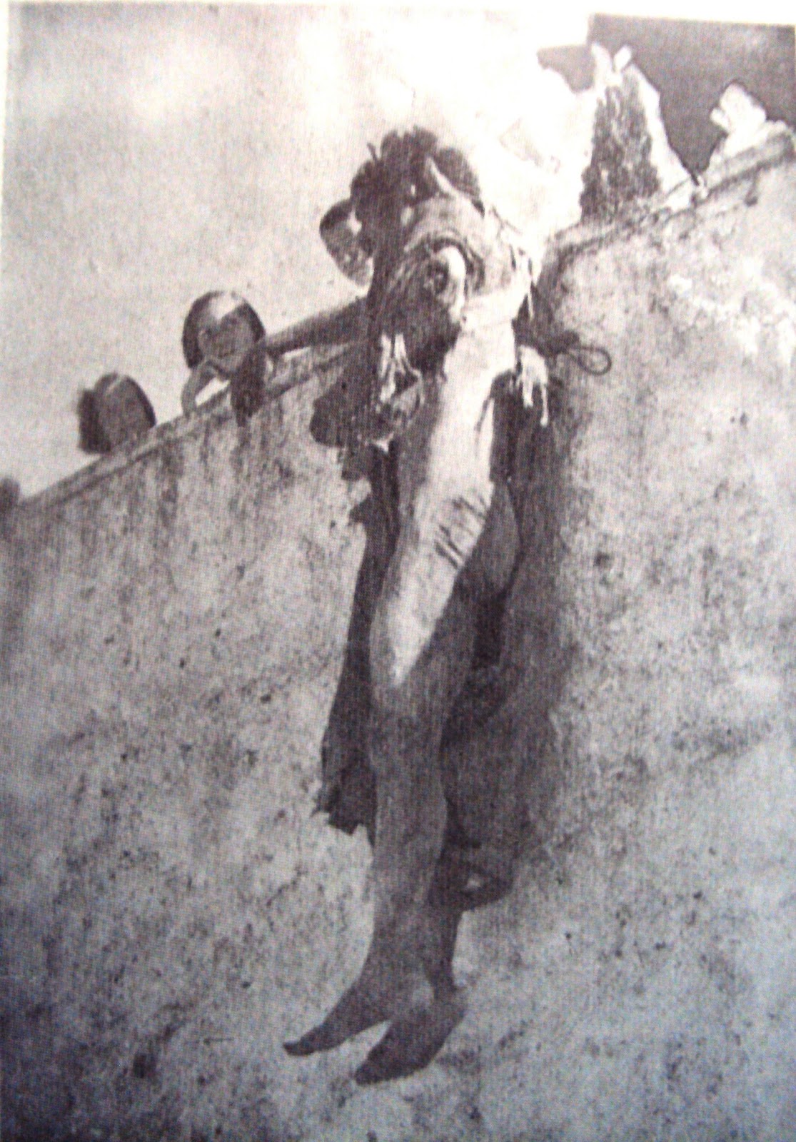 32) Ο αντάρτης του ΔΣΕ Ευβοίας Νίκος Μαχαιράκος που είχε την ατυχία να πιαστεί ζωντανός από τον στρατό το 1949, βασανίσθηκε φρικτά και πέθανε σταυρωμένος σε σκάλα, στην πλατεία του χωριού Ιστιαία