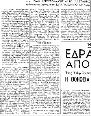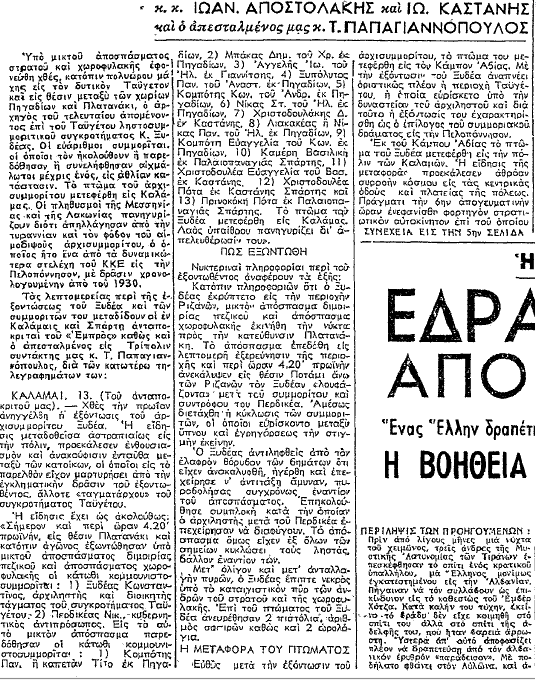 Για τον θάνατο των Πρεκεζέ και Μάστορη ( εφημερίδα Αλήθεια της Τρίπολης)