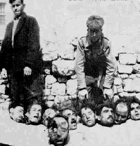 14) Τα κεφάλια εννέα ανταρτών εκτίθενται από συμμορία κατσαπλιάδων το 1949 σε χωριό της Μακεδονίας