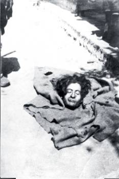 88) Τα νεκρά κορμιά των ανταρτών της Εύβοιας Παπά και Μαγκλαβάνη εκτίθενται μετά την δολοφονία τους από χωροφύλακες και παρακρατικούς το 1946 στην Χαλκίδα