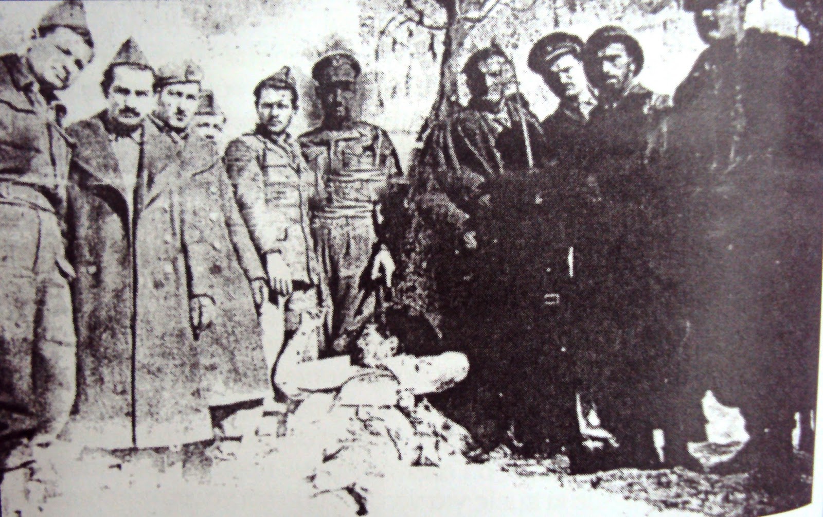 90) Η παρακάτω φωτογραφία έχει ληφθεί στην Χαλκιδική το 1945. Παρουσιάζει την δολοφονία διωκόμενου αγωνιστή από ομάδα παρακρατικών. (Αρχείο Φαρσακίδης)
