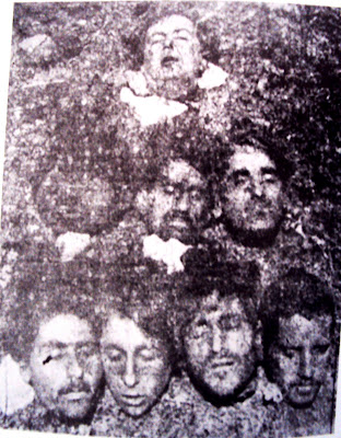 19) Τα κεφάλια 7 ανδρών του ΔΣΕ σε κοινή επίδειξη από τον ΕΣ. Πιθανότατα σε κάποια επιχείρηση στην Πελοπόννησο